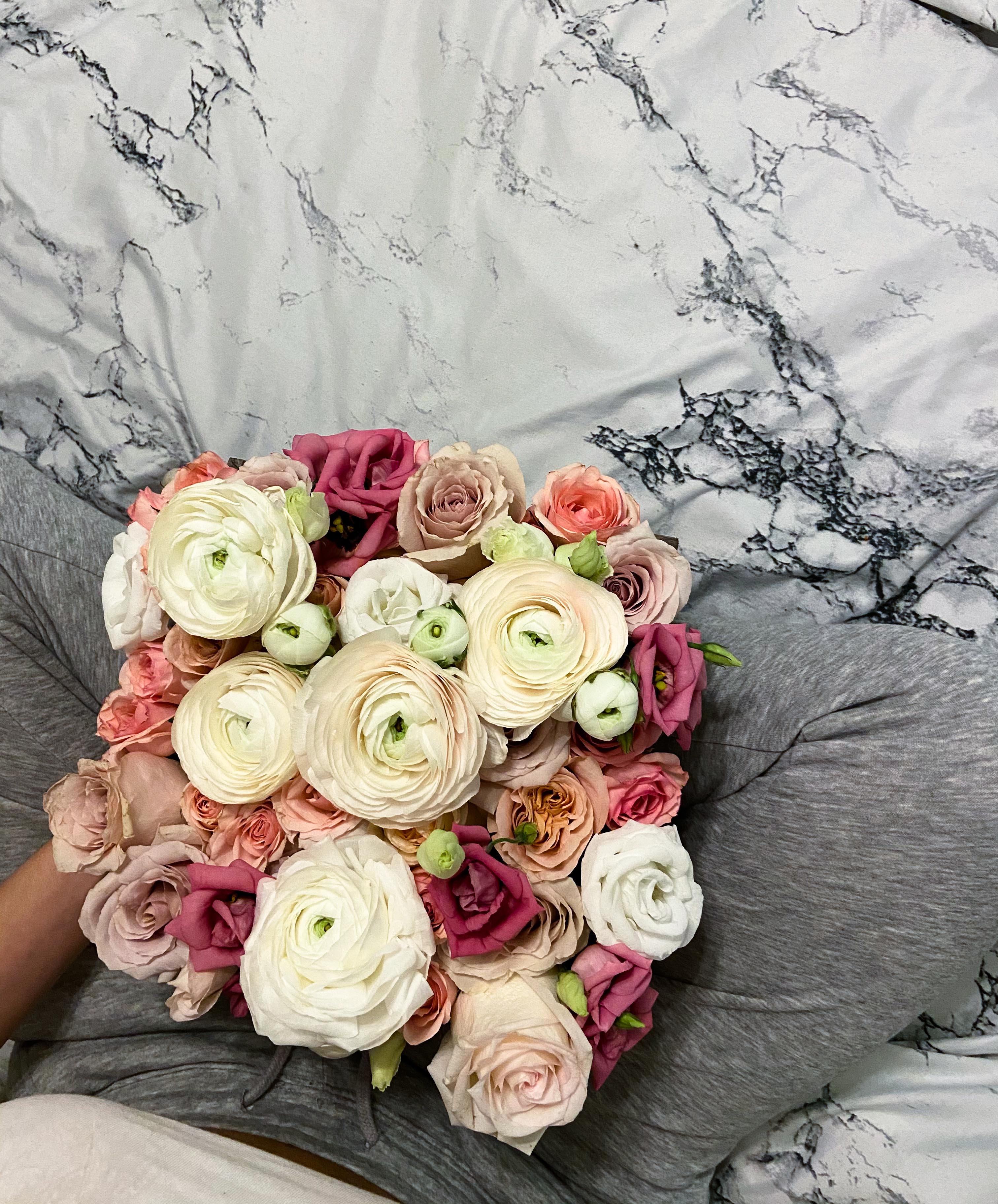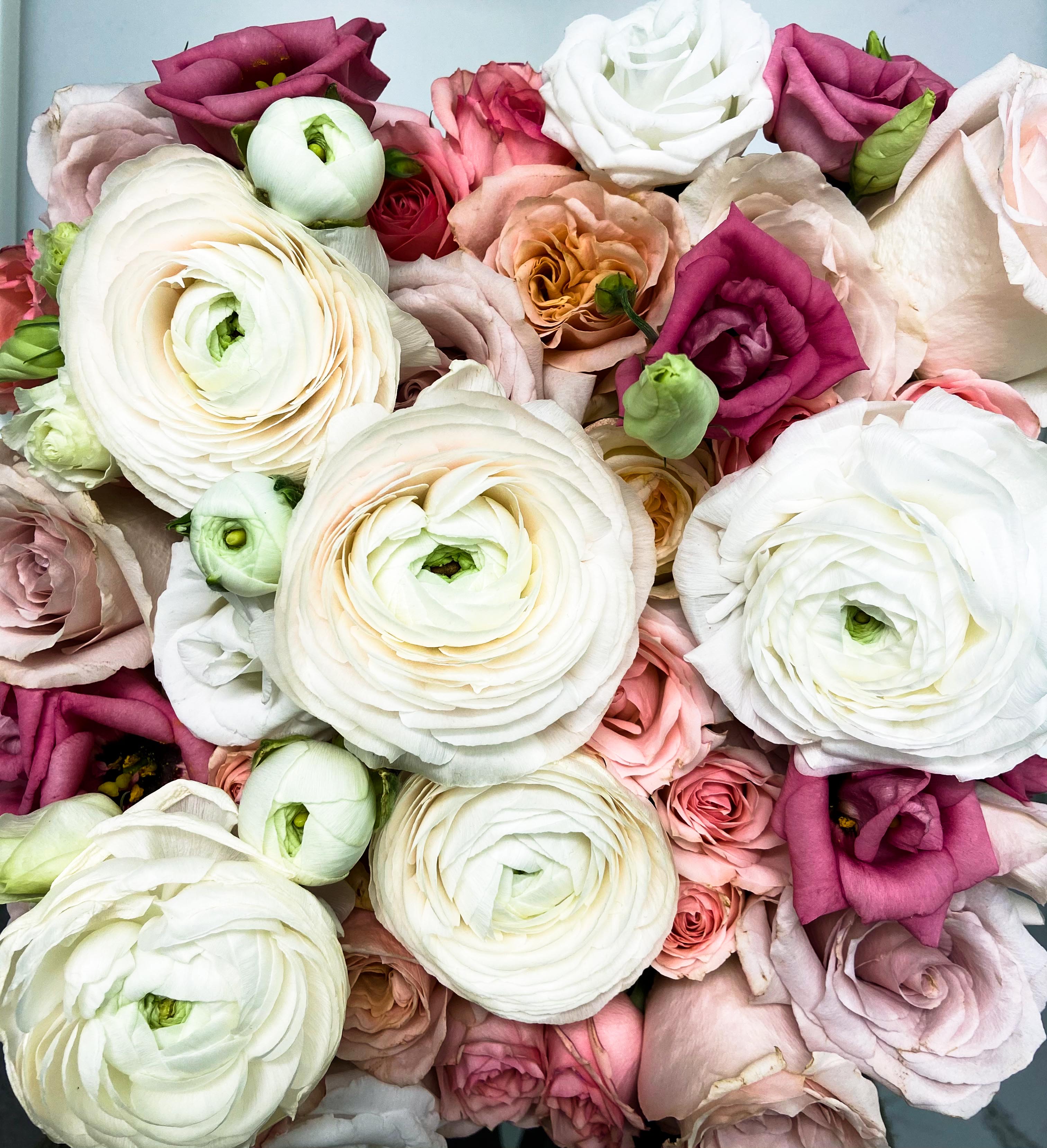 'Sweet Like Candy' brings back the nostalgic pastel colours of those classic candy hearts- in flowers! Ranunculus, garden roses and lisianthus in soft pinks, purples and whites all in a rustic wooden box (for a keepsake after). A modern twist on all your favourite flowers, a perfect compliment for V-Day at home!